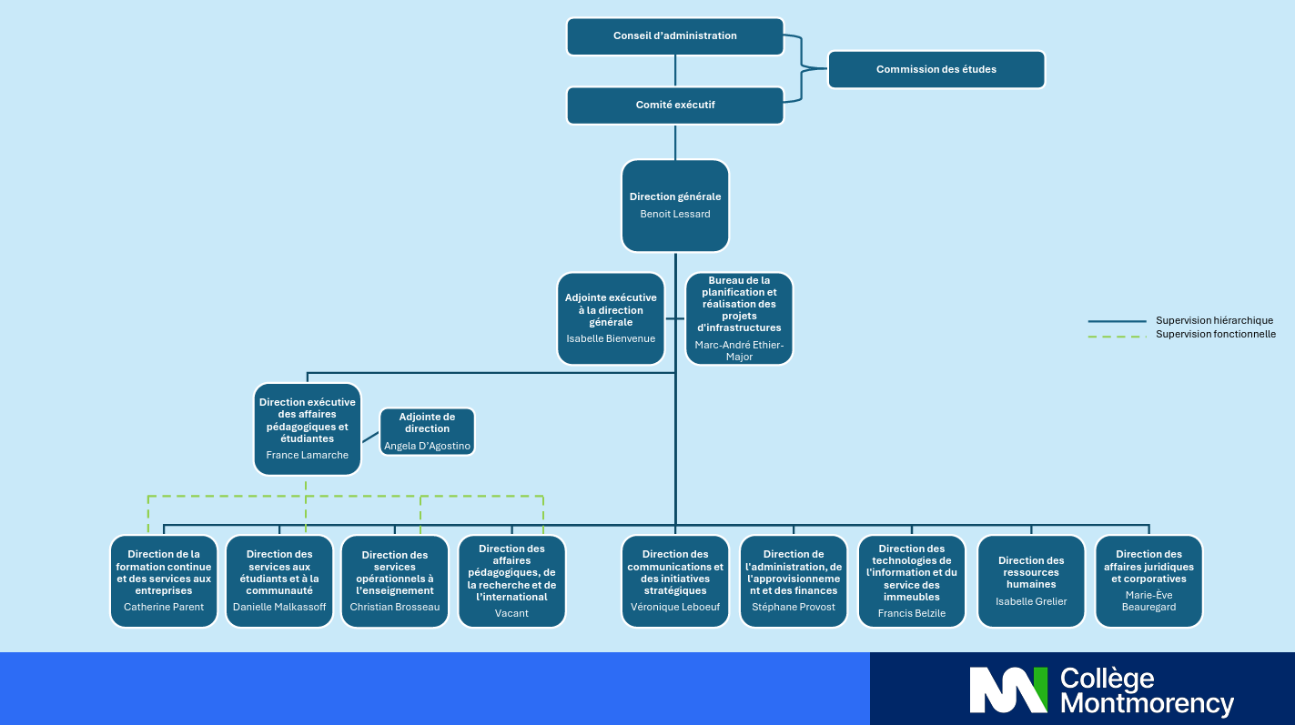 Voici la structure organisationnelle du Collège et les directions qui la composent :