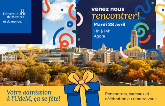Vous avez reçu une offre d’admission à l’Université de Montréal? Ne manquez pas cette occasion unique de rencontrer l’équipe de l’UdeM présente au Collège Montmorency le 28 avril prochain!