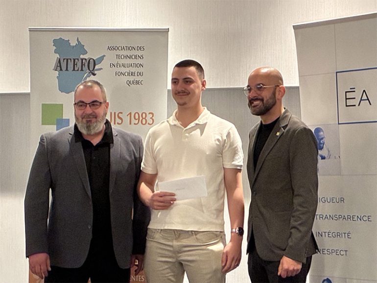 Le 14 novembre s’est tenu à Laval, le 42e congrès annuel de l’Association des techniciens en évaluation foncière du Québec (ATEFQ). Lors de cet événement, le diplômé de la spécialisation Évaluation du programme Technologie de l’estimation et de l’évaluation en bâtiment, Maxime Zalzal, s’est vu décerner une bourse de mérite. Il est ainsi un des trois étudiants, provenant de trois collèges différents, ayant reçu cette bourse remise en partenariat avec l’Ordre des évaluateurs agréés du Québec (OEAQ).