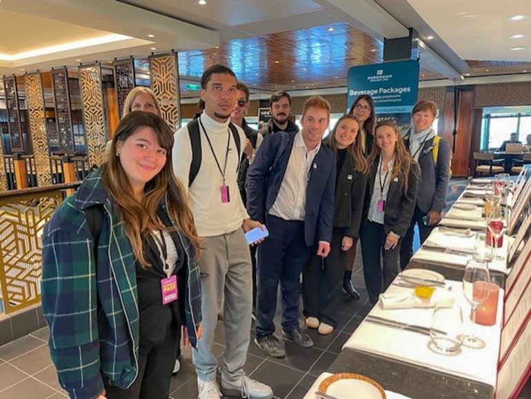 Après un trajet Montréal-Québec en train, les étudiantes et les étudiants du cours Transports en tourisme du programme actualisé Techniques en tourisme ont eu l’occasion de visiter le Norwegian Gem, un navire de croisière, rénové en 2022, qui était de passage à Québec.